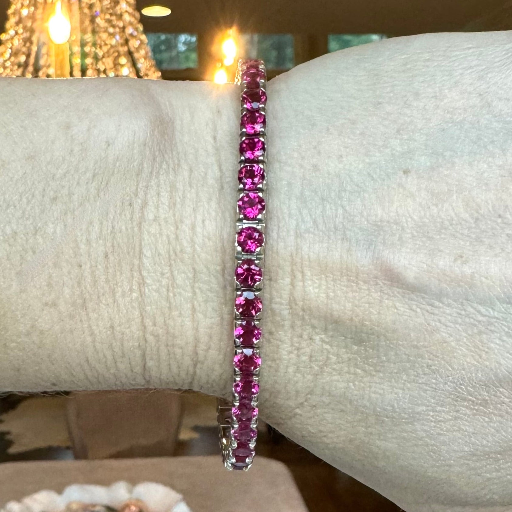 Stunning garnet 14k Gold Tennis bracelet. Perfect for everyday wear or special occasions. Great for stacking with other bracelets.