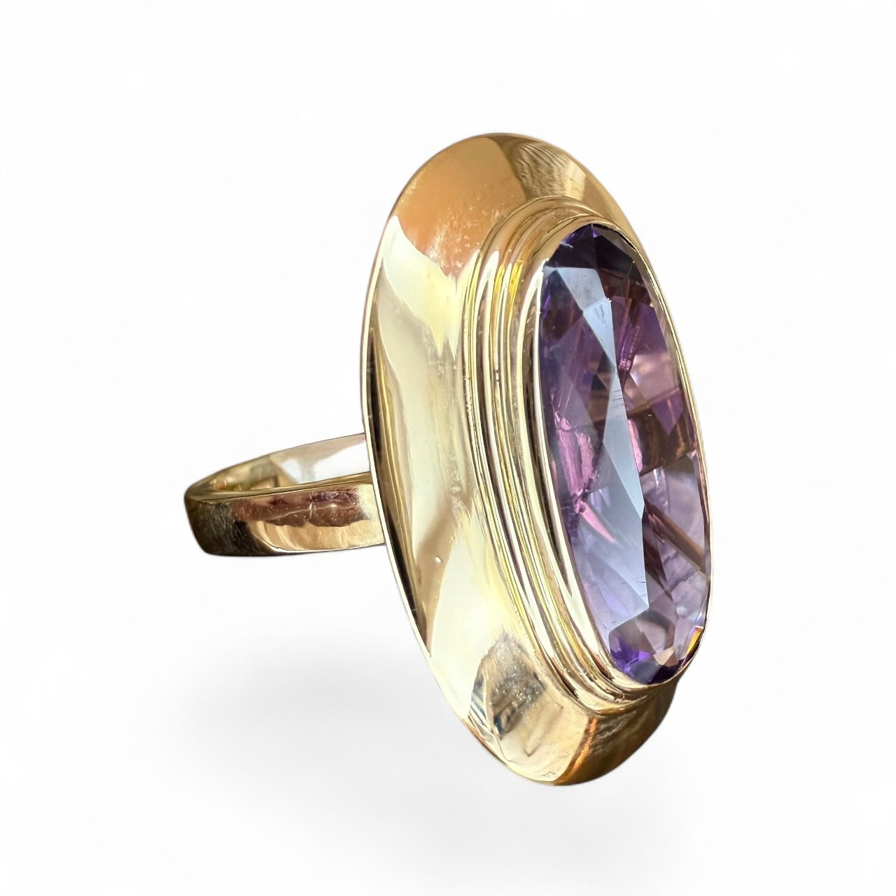 14k Oval Amethyst Ring with Wide Polished Bezel