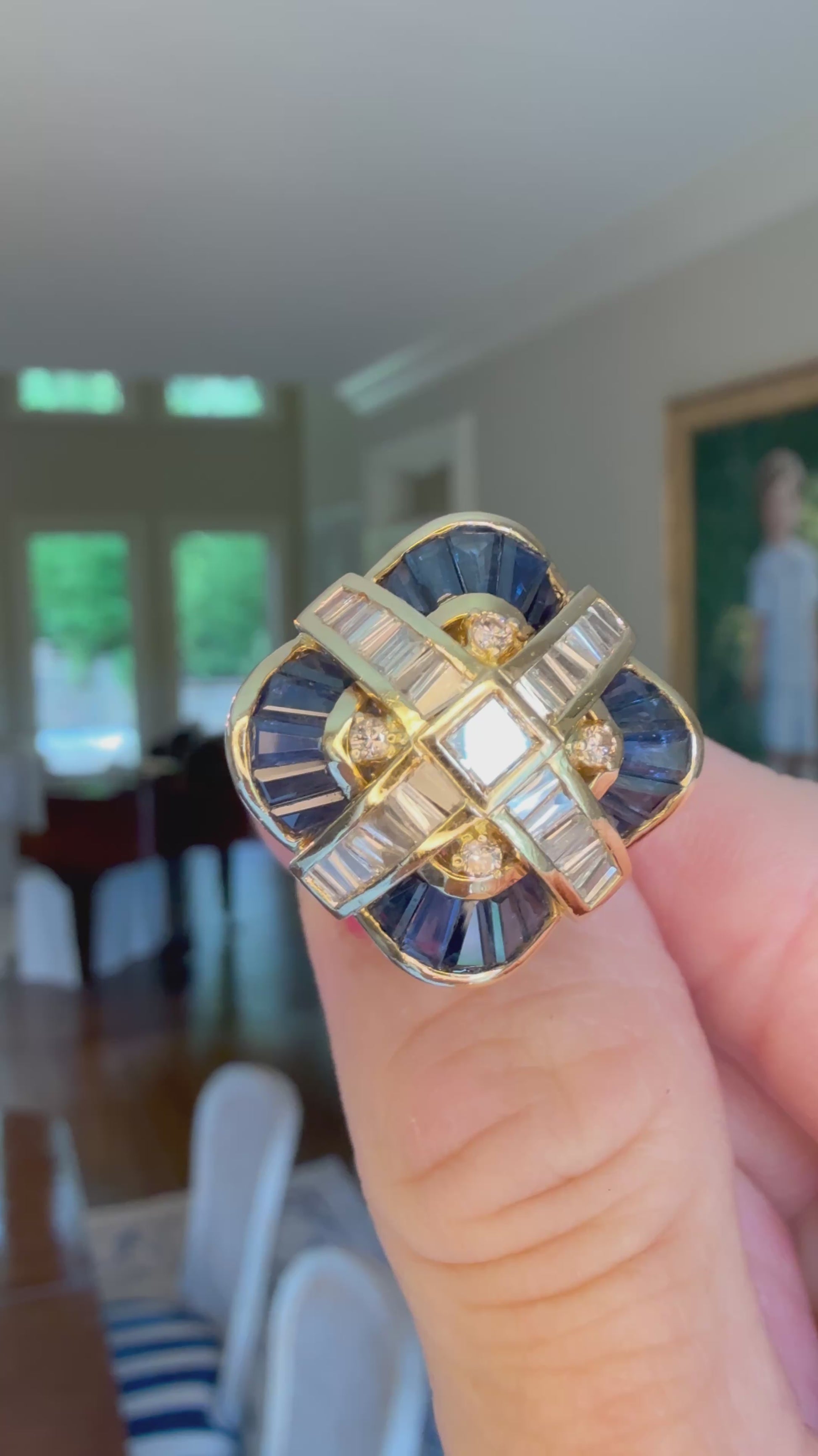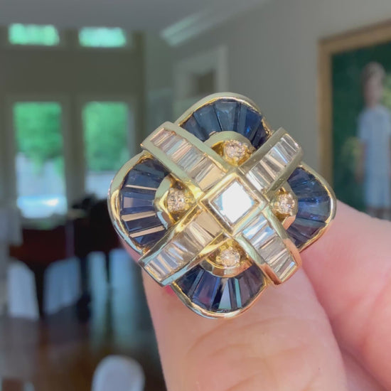 18k Sapphire and Diamond Cocktail Ring or Pendant:Appraisal Included
