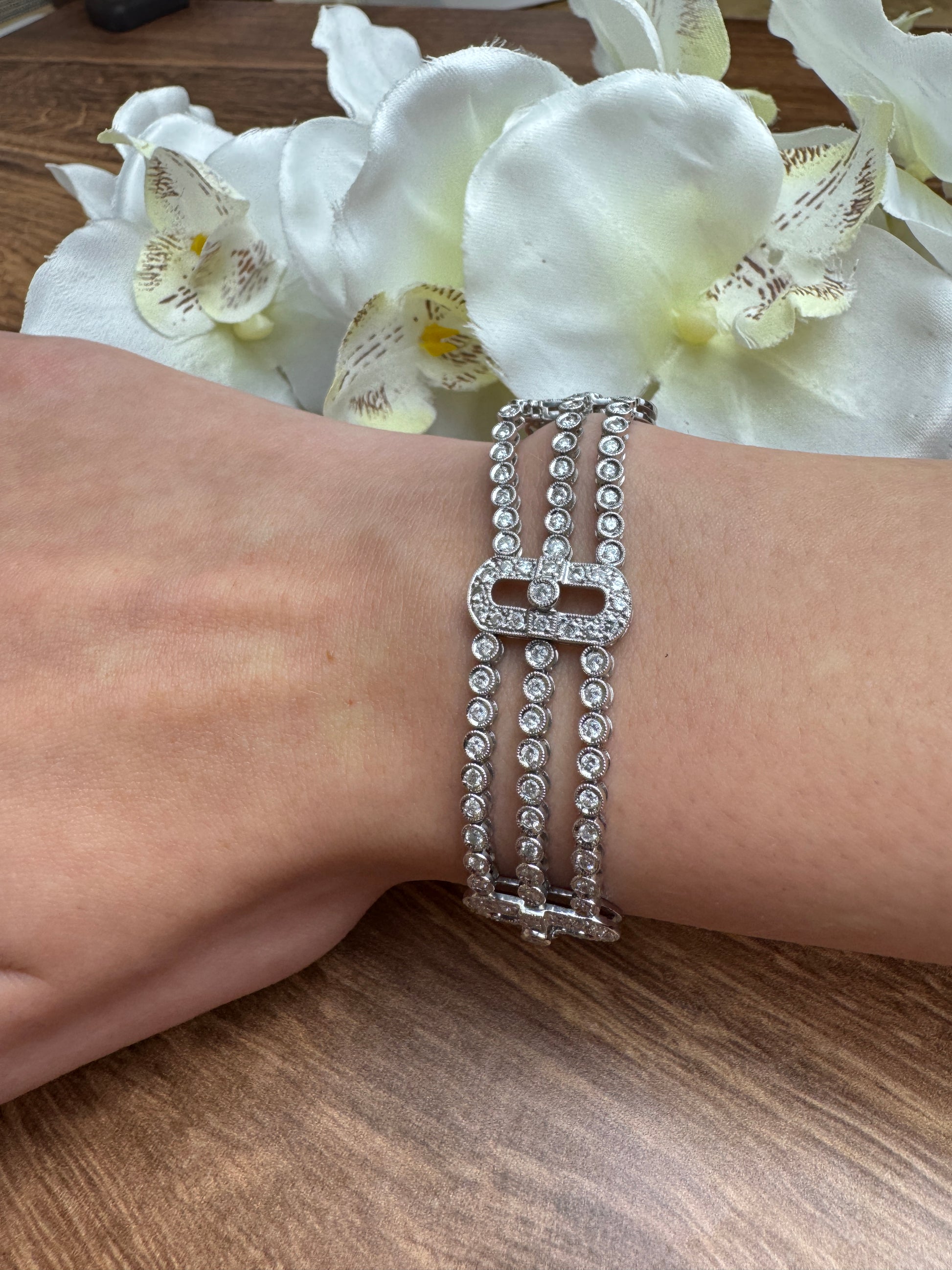 18k White Gold 3-Strand 4.2CT Diamond Bracelet