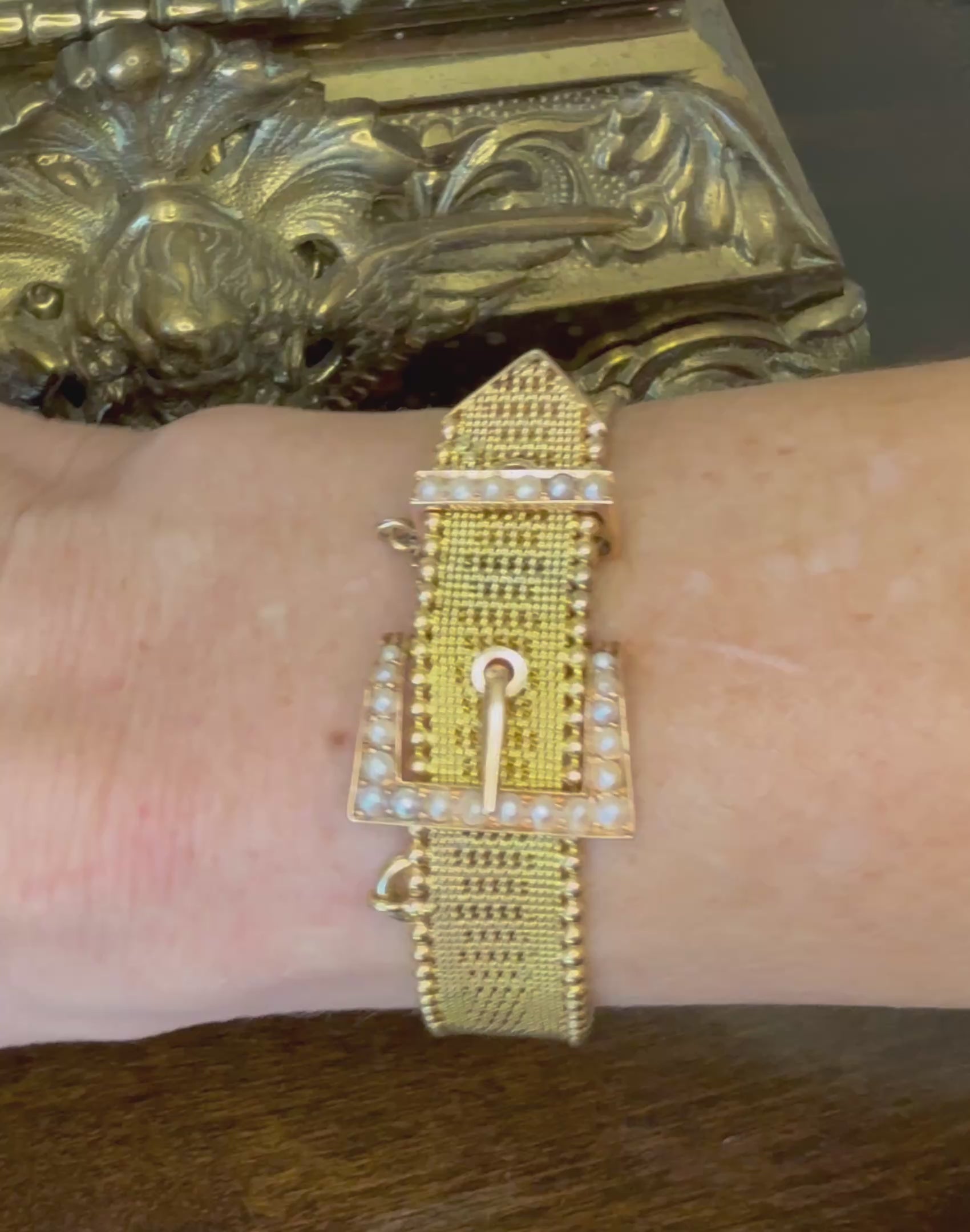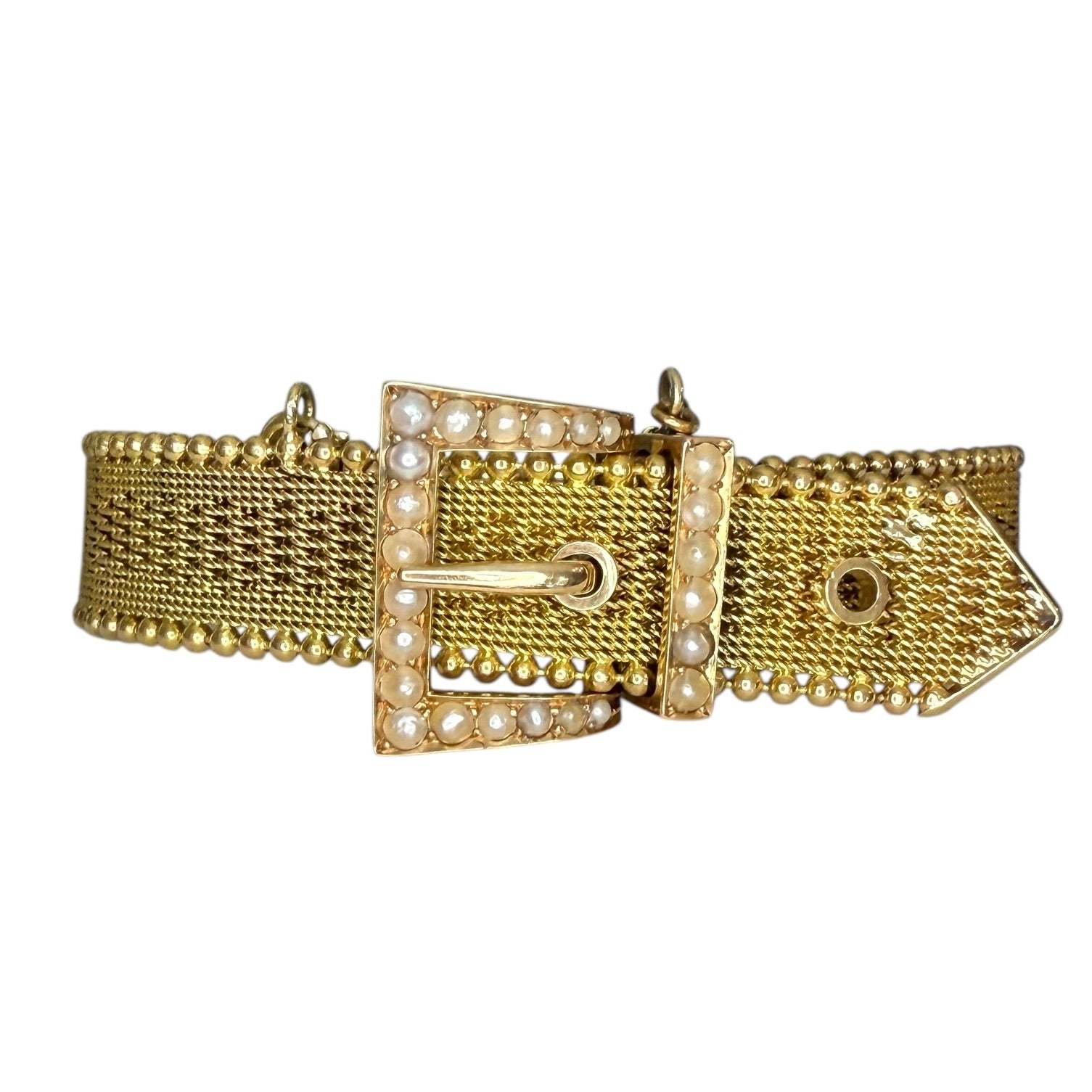 18k Yellow Gold Buckle Bracelet with Seed Pearls
