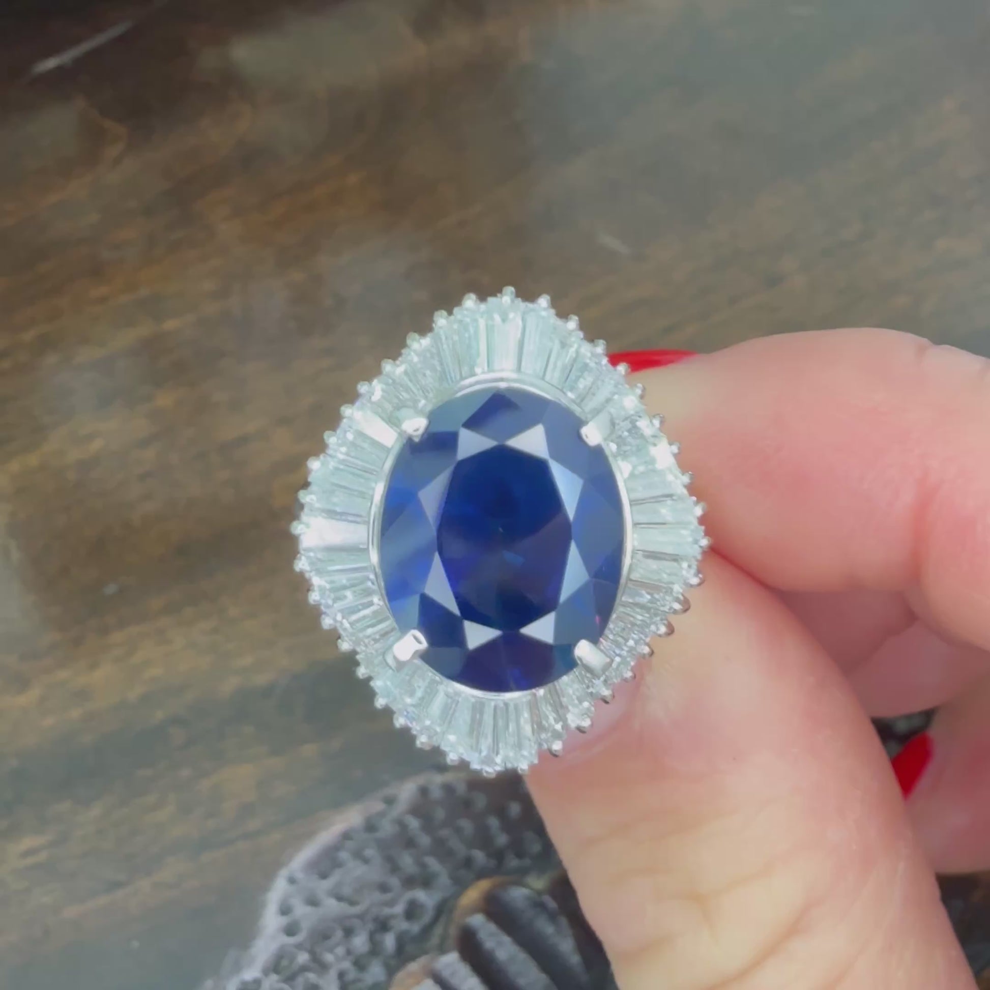 This exquisite Platinum 6.40 CT Sapphire and 1.67 CTW Diamond Ballerina Ring, size 6.5, is a stunning example of timeless elegance and expert craftsmanship. The deep blue sapphire center stone, weighing 6.40 carats, is beautifully complemented by a delicate halo of 1.67 carats total weight of sparkling diamonds, enhancing its brilliance and fire. Each ring has been meticulously authenticated by a GIA graduate gemologist, ensuring the quality and authenticity of the gemstones. As a preowned estate piece, it may exhibit subtle signs of wear, adding character and history without detracting from its overall beauty. This ballerina ring is a unique choice for those who appreciate refined vintage jewelry with exceptional value and detail.