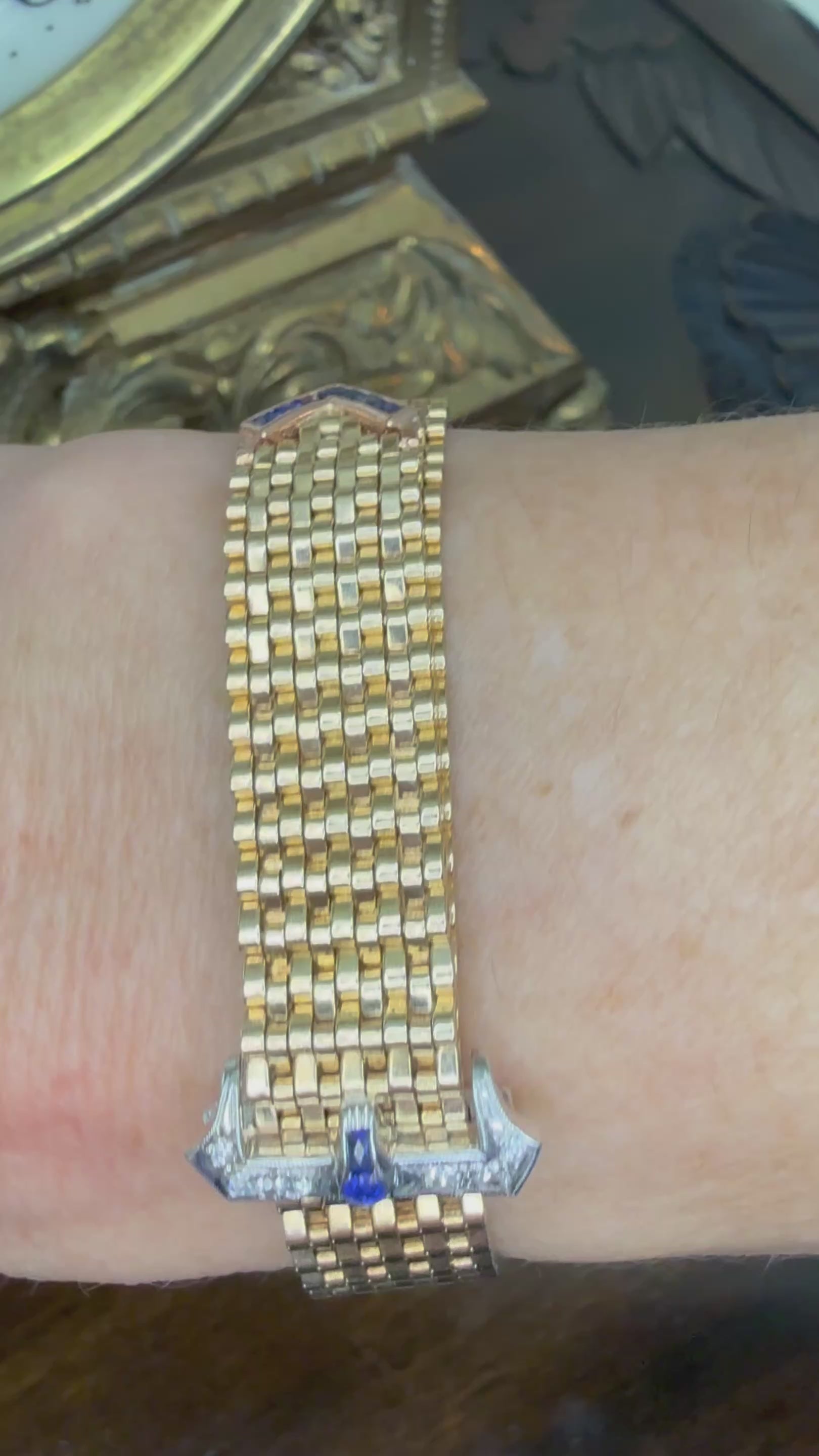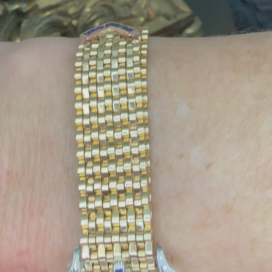 Vintage 14k Belt Bracelet with Diamond and Sapphire Buckle Clasp-Includes GIA Appraisal