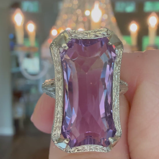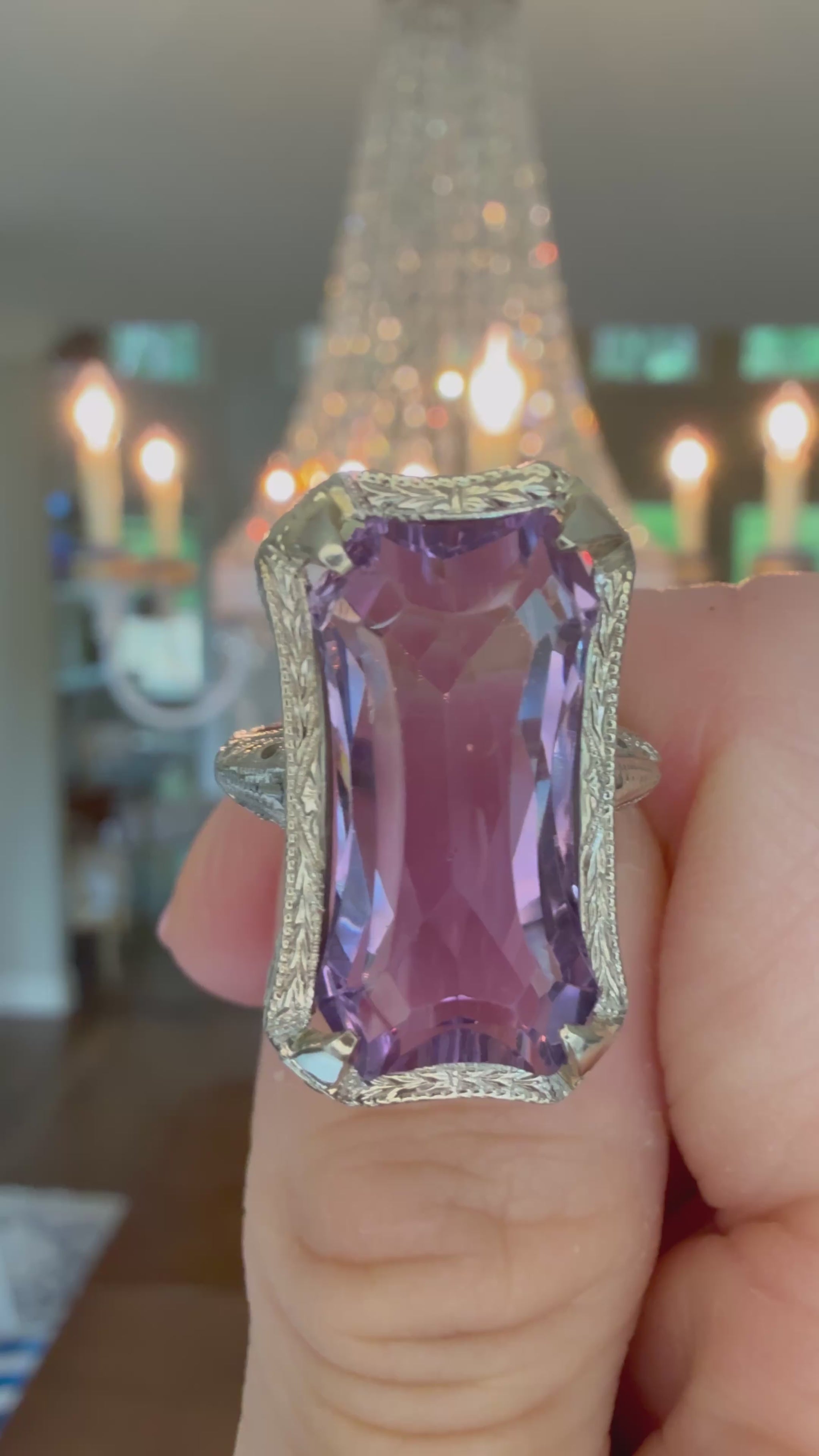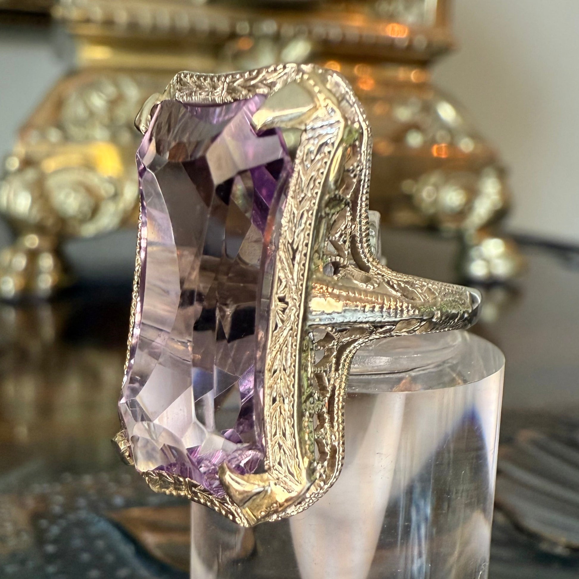 Vintage 14K Amethyst Edwardian Cocktail Ring with beautiful filigree details. A gorgeous antique amethyst ring.